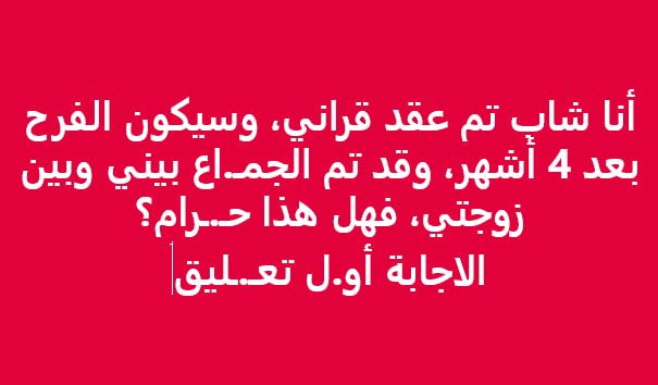 أنا شاب تم عقد قراني، وسيكون الفرح بعد 4 أشهر، وقد تم الجمـ.اع بيني وبين زوجتي، فهل هذا حـ.ـرام؟