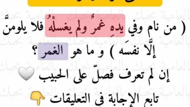 قال رسول ﷺ من نام وفي يدهِ غمرٌ ولم يغسلْهُ فلا يلومنَّ إلَّا نفسَه ..