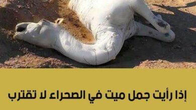 إذا رأيت جمل ميت في الصحراء لا تقترب منه أبداً.. خطير جداً !! شوفوا السبب لمتابعة التفاصيل اضغط على الرقم…